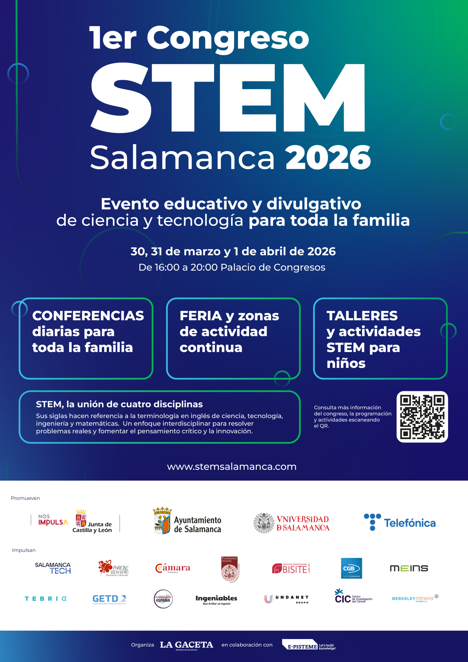El Congreso STEM Salamanca es un evento educativo centrado en la ciencia, la tecnología, la ingeniería y las matemáticas dirigido a niños, jóvenes y familias. Durante tres días, el Palacio […]